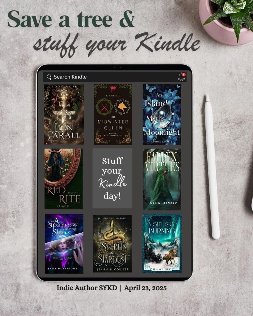 Head onto the landing page and browse through the books that will be available for free on the 23rd. Share the love. Treat yourself to a free ebook (or 8). Do it for trees!