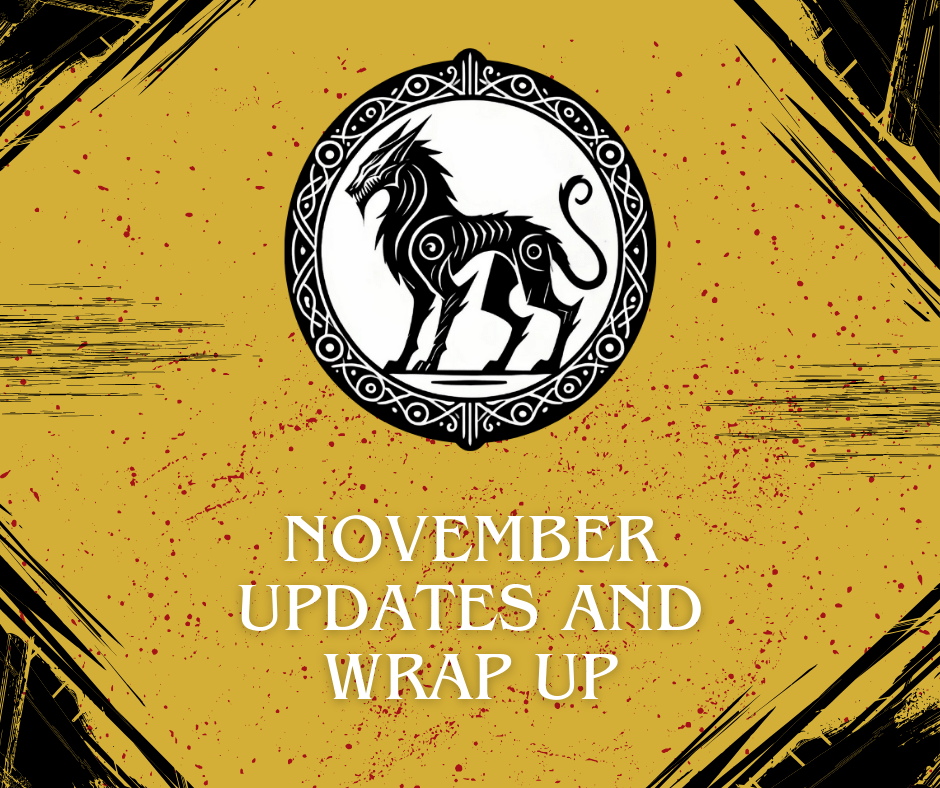 We’re getting to the end of the year and I’m feeling it in my bones. Here are my November updates;